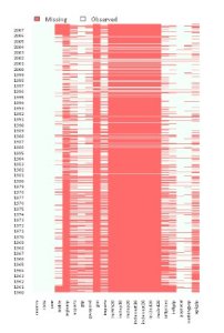 to visualize missing data in large datasets. Looks like a great tool for data cleaning and imputation.