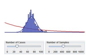 Heres a slick new demonstration of the Central Limit Theorem.  (Of course it’s slick–it’s written by Leland Wilkinson, the Grammar of Graphics guy!)  I’m using it for my "poet’s" class.