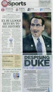 Real Men have a sense of humor, especially about themselves. Here’s a bad example: Duke University’s Blue Devils coach Mike Krzyzewski had his widdle feelings hurt after the Indianapolis Star ran this picture: