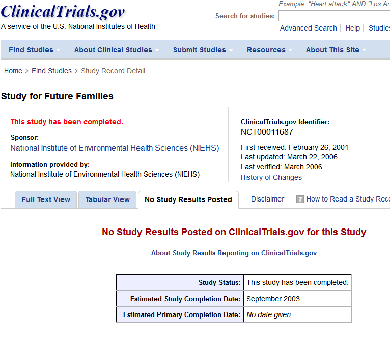 Only one problem. I tracked down the referenced Study for Future Families and found this: