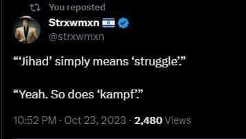 - BBC News Arabic describes the October 7th massacres as a “morning of hope.” The BBC promises an internal investigation. Go suck it, license payers.