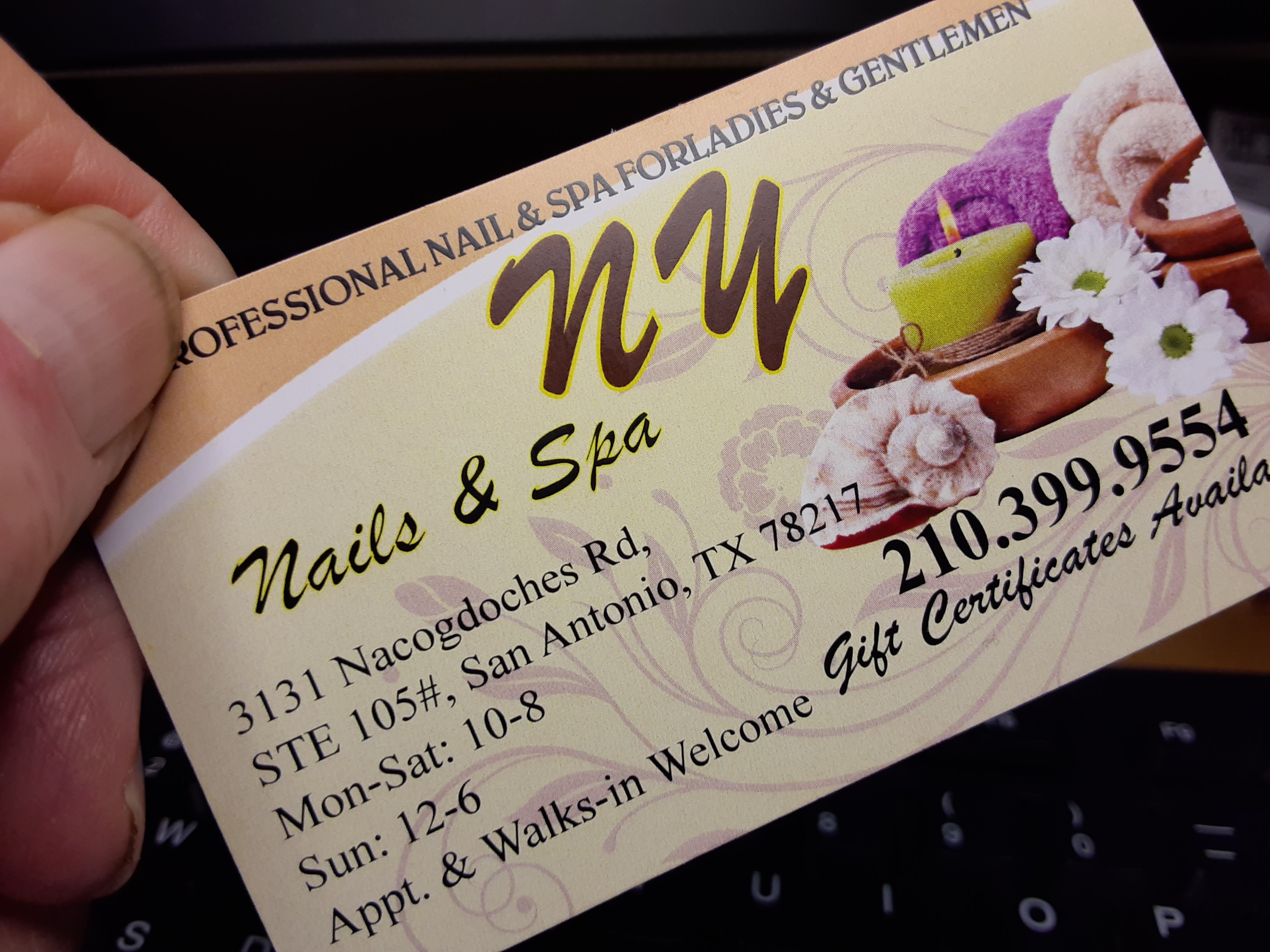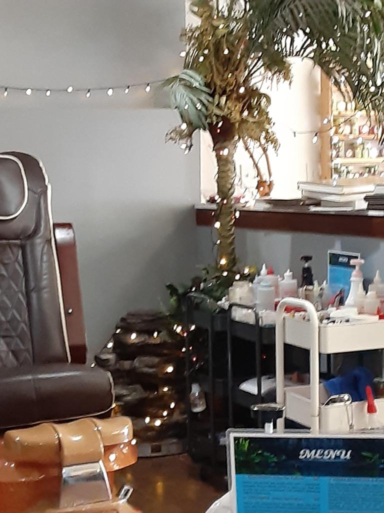 NY Nail & Spa is a kinda goofy place located in the neighborhood strip mall (between Great Clips and the Michoacana Ice Cream store). Decor is a weird combination of high tech and DIY, with inexplicable decorations–what’s with the Xmas lights? That throwaway bullshit phrase “world class” is at a right angle in the complex plane to this place. The customers all love it.